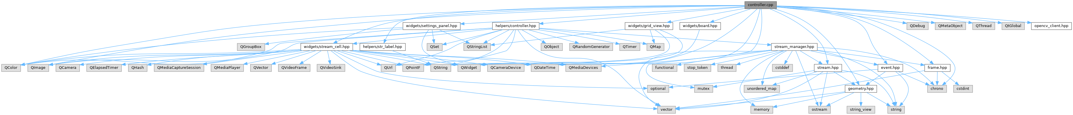 #include "helpers/controller.hpp"#include "geometry.hpp"#include "helpers/str_label.hpp"#include "stream.hpp"#include "widgets/settings_panel.hpp"#include <QCameraDevice>#include <QColor>#include <QDateTime>#include <QDebug>#include <QImage>#include <QMediaDevices>#include <QMetaObject>#include <QThread>#include <QtGlobal>#include <chrono>#include "event.hpp"#include "frame.hpp"#include "opencv_client.hpp"#include "widgets/board.hpp"#include "widgets/grid_view.hpp"#include "widgets/stream_cell.hpp"