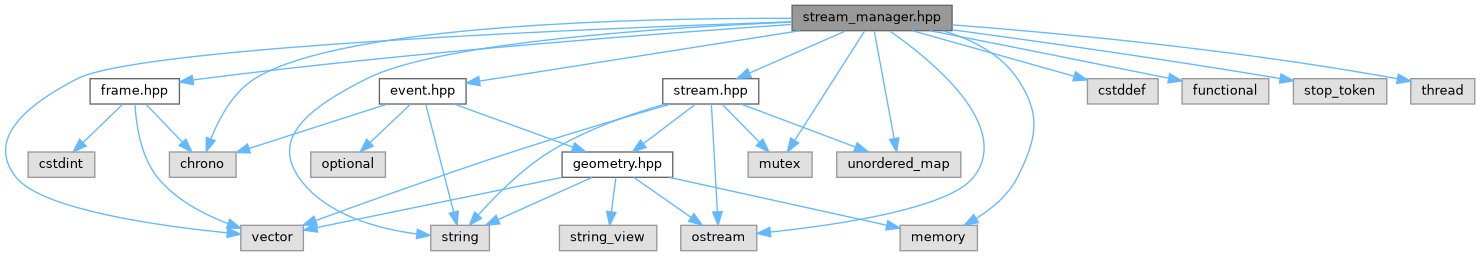 #include "event.hpp"#include "frame.hpp"#include "stream.hpp"#include <chrono>#include <cstddef>#include <functional>#include <memory>#include <mutex>#include <ostream>#include <stop_token>#include <string>#include <thread>#include <unordered_map>#include <vector>